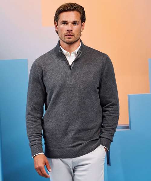 Embrace a modern silhouette with the cotton blend 1/4 zip sweater. A perfect piece for between seasons layering.