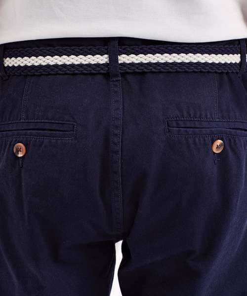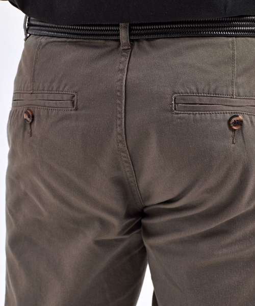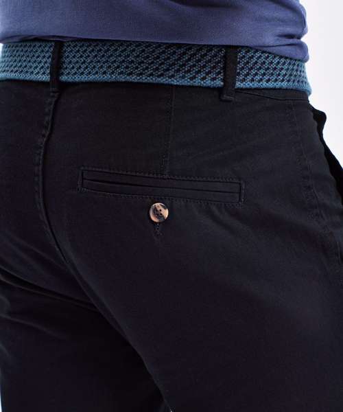 Classic regular fit chino. Soft finish fabric. Two back jet pockets with button fastening. Zip fly. Button fastening at waist. Machine washable. Product contains no branded neck label. Removable Kimble or looped garment tags. Inner seam label holds important product information on one label with a second label containing brand information which can be cut-away. Please note old stock may contain a fixed branded label.