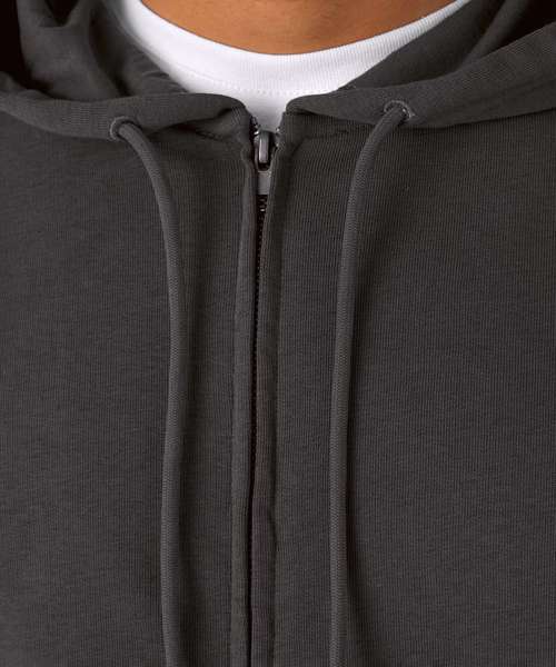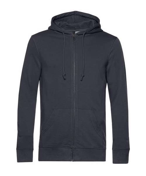 Trendy organic zipped hooded sweatshirt with retail fashion oriented look and feel. Strong styling with great fitting and perfect length. Side seams ensure the best fit and a masculine silhouette. Visible "Hi, I'm Organic" neck tab to highlight the organic value of the garment. Easy branding solution - B&C No Label Solution. Inside single Jersey halfmoon in back to allow easy branding personalisation. Qualitative herringbone neck tape. Retail like features: covered metal zip, single Jersey lined hood, qualitative herringbone neck tape and fashionable drawcord.