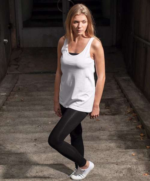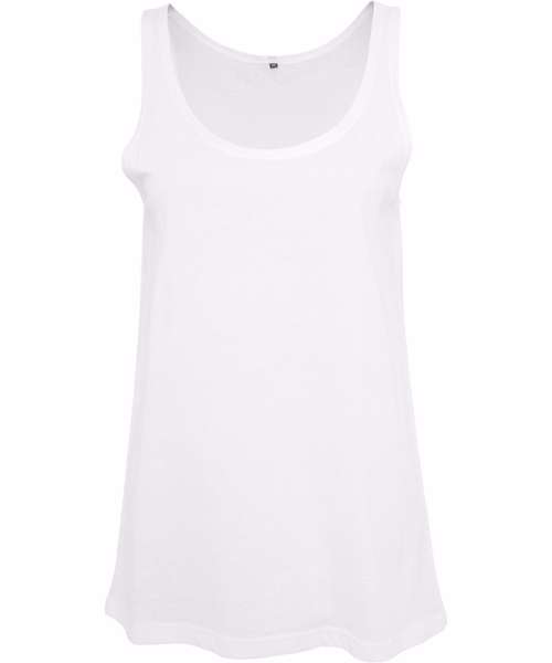 With its long, slightly wider fit, the Women's tank top is an ideal basic item for those warmer days. The large round neckline makes it even more casual, while the lightweight single Jersey can be easily embellished with printing. Suitable for interior neck-printing.