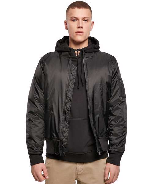 The classic bomber jacket offers a contrast orange colour lining and typical pocket on the upper arm The jacket features set-in sleeves, and a full through zip. This product is ideal for rebranding, print and embroidery and also includes an inside zip for easy front and back access.
