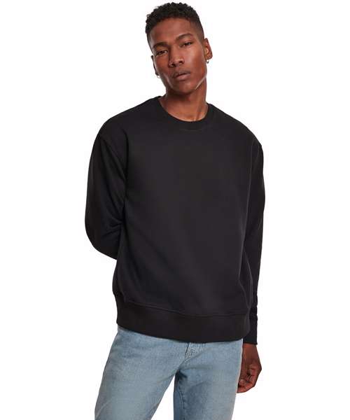 The oversize cut crew neck sweatshirt convinces with its high cotton content. Wide ribbed cuffs at the hem and sleeves round off the look. The crew is made for finishing by screen printing and flex printing. This item is manufactured in a FAMA Certified factory. FAMA stands for Facility and Merchandise Authorisation and is a high standard production certificate.