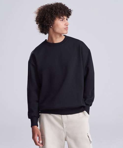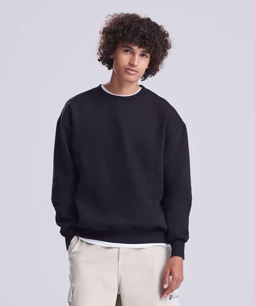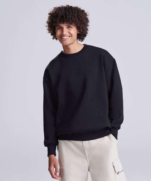This unisex sweatshirt ensures maximum style with minimal effect. It will partner with anything and is a fuss-free style for every day. Made with a heavyweight premium cotton-rich fabric, it has an oversized, boxy fit, true to size, and features a crew neck, ribbed collar, cuffs and hem. A sweatshirt to keep you warm and comfortable.