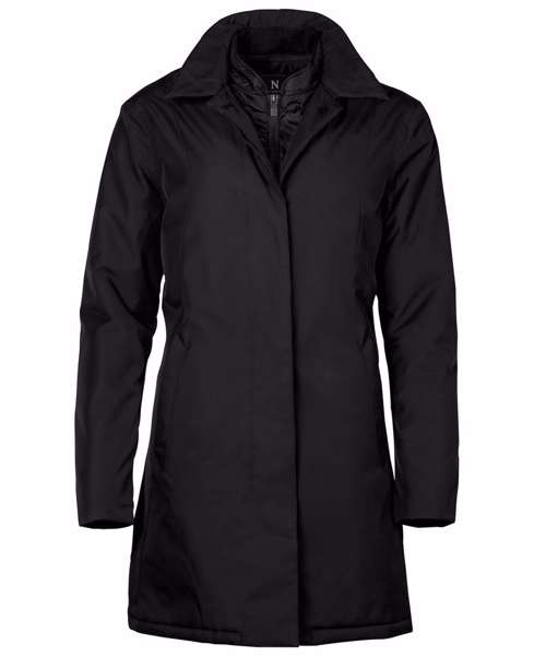 DETAILS: Removable chest warmer. Feminine ¾ length. Insulation with Sorona® Aura. Recycled fabrics. Water resistance 3000mm. Windproof. Breathability: 3000gsm/24h. Water-repellent finish (Bionic Finish® ECO). SUSTAINABILITY: Reach. Global Compact. Amfori. OEKO-TEX 100. Outer fabric: Recycled fabric (mainly plastic bottles, packaging, fishing nets or textile waste). Water-repellent - Bionic Finish® ECO impregnation. Padding - Sorona® Aura insulation (made from 30% Bio-based fabric).