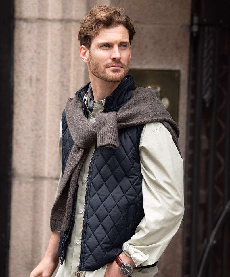 The Camden is the ultimate layering piece – a light, padded and quilted gilet inspired by country living, adding a touch of urban tranquillity and a dash of business perfection. It features elegant details such as a medium high neck collar with comfortable knit, inner pocket, metal zip and two utility pockets. Nimbus’s fashionable leather details add to the authentic quilted look. An insulated garment for those who want to commute light or who prefer a little extra warmth underneath a jacket.