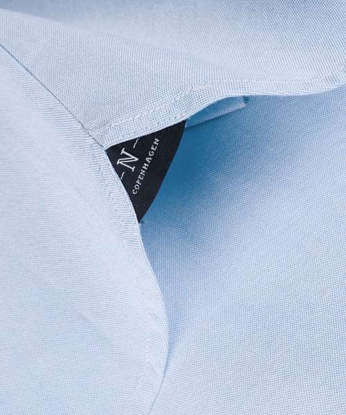 DETAILS: Shaped pleats. curved hem and toned contrast details. Buttons in mother-of-pearl colour. Third collar button at collar centerback. SUSTAINABILITY: Reach. Global Compact. Amfori. Accord. OEKO-TEX
