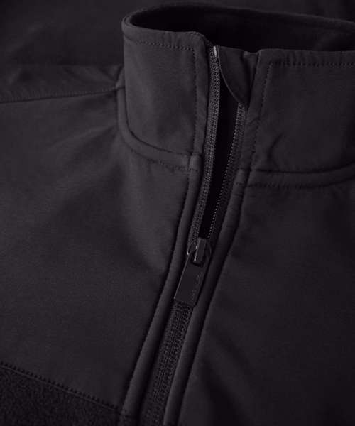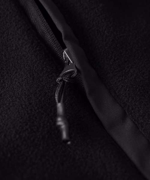Fleece: 100% Recycled polyester. Contrast fabric: 100% Polyester (yoke, pockets and outside collar)