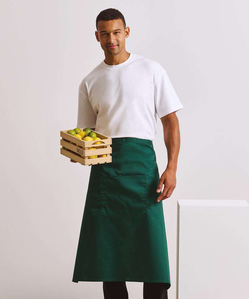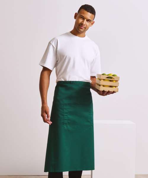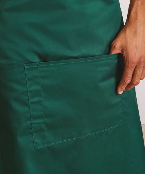 A bar apron that falls to a length of 80cm offering the wearer maximum coverage. This apron comes in 24 colours and is part of the 'Colours Collection' from Premier. To the centre of the apron is a useful centre pocket for carrying tablet devices, together with a combined pen compartment.