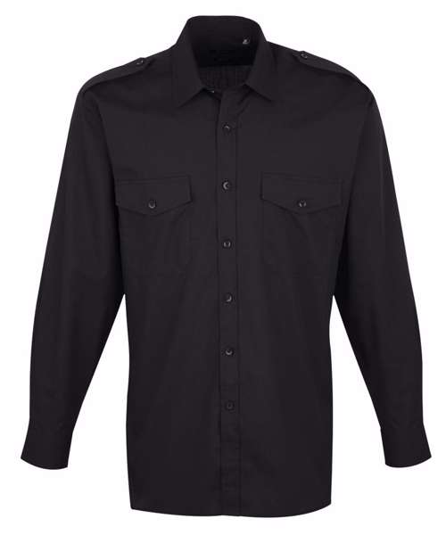 For those who require a more authoritative approach to their working uniform, this men's long sleeve Pilot shirt is ideal as it features tabs on the shoulders that can accommodate Epaulettes and has two button down chest pockets.