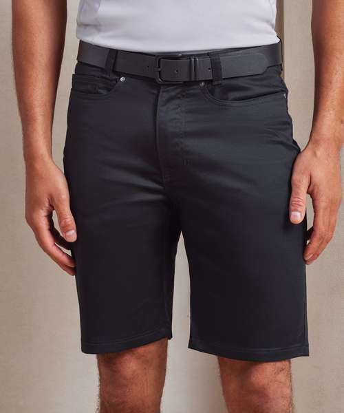 Men’s chino shorts with a touch of elastane for comfortable stretch performance. To the waistband there are loops to facilitate a belt, a metal button and a hook and bar for secure fastening. Covered YKK zip fly and side pockets with rivet detail for a typical ‘chino’ look. Two patch pockets to the reverse. Finished with a double turned hem.