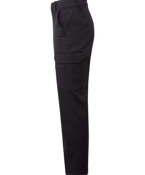 Durable work cargo trousers with Premier's Stretchchecker fabric for stretch and a comfortable fit. Belt loops and two-button fastening to the waistband. Covered YKK zip fly. Side sling pockets. Multiple mobile friendly, cargo-style pockets with hook and loop fastening. Single patch pocket to the reverse. Two leg lengths. Unisex styling. Contains certified recycled polyester.