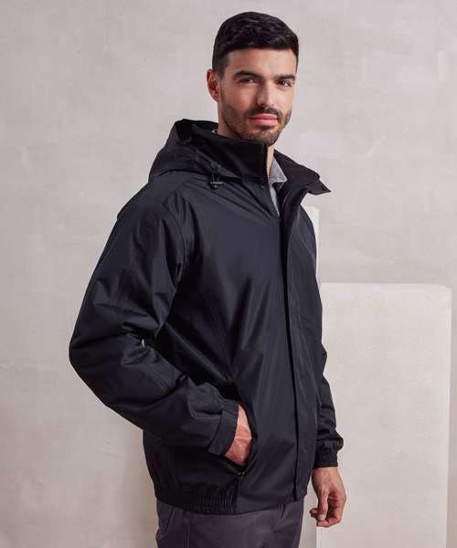 With Premier's Hydrochecker fabric guaranteeing a weatherproof jacket. Fully lined with warm microfleece and a handy inner patch pocket. Hidden zip for embroidery access. High neck cadet collar which facilitates a fold-away drawcord hood. Full zip-through with storm flap and hook and loop fastening. Outer fabric with PVC coating and taped seams for additional waterproofing. Side seamed zipped pockets with fleece lining. Part elasticated cuffs with adjustable hook and loop fastening. Part elasticated hem.Waterproof rating of 5000mm conforms to UKCA & CE EN343 1:1