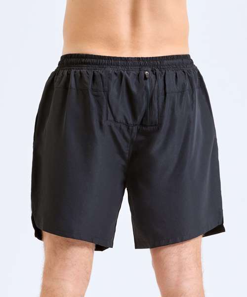 Wicking fabric. Elasticated waist with drawcord inner. Inner liner shorts for support. Mid-thigh length. Lightweight. Zip pocket to back for storing essentials. Two front pockets. Drop hem detailing to front of shorts, whilst a drop hem to the front of the shorts adds a unique twist. Inside leg- 16.5cm. We recommend using block out vinyl and inks.Product contains no branded neck or waist label. Removable Kimble or looped garment tags. Inner seam label holds important product information on one label with a second label containing brand information which can be cut-away.