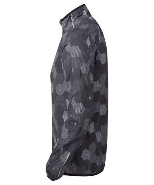 Lightweight fabric. Dropped back hem for improved coverage. Long sleeve. Reflective strips on arms and shoulders. Full zip. Mesh panels. We recommend using block out vinyl and inks.Product contains no branded neck or waist label. Removable Kimble or looped garment tags. Inner seam label holds important product information on one label with a second label containing brand information which can be cut-away.