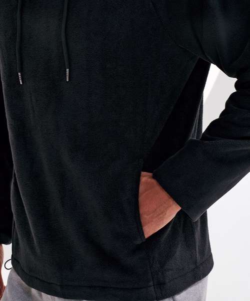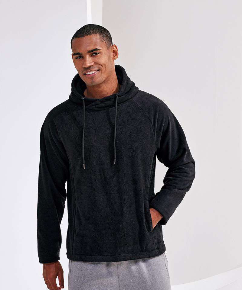 Pull-over microfleece with hood. Crossover detailing to front of hood. Self-colour drawcords. Front panel with concealed front pockets. Elasticated cord with plastic adjuster to inner hem. We recommend using block out vinyl and inks.Product contains no branded neck or waist label. Removable Kimble or looped garment tags. Inner seam label holds important product information on one label with a second label containing brand information which can be cut-away.
