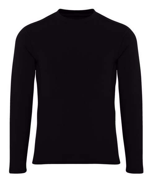 Stretch top. Crew neck. Long sleeve. Lightweight. Twin-needle stitching on hem and arms. We recommend using block out vinyl and inks.Product contains no branded neck or waist label. Removable Kimble or looped garment tags. Inner seam label holds important product information on one label with a second label containing brand information which can be cut-away. UPF 40+.
