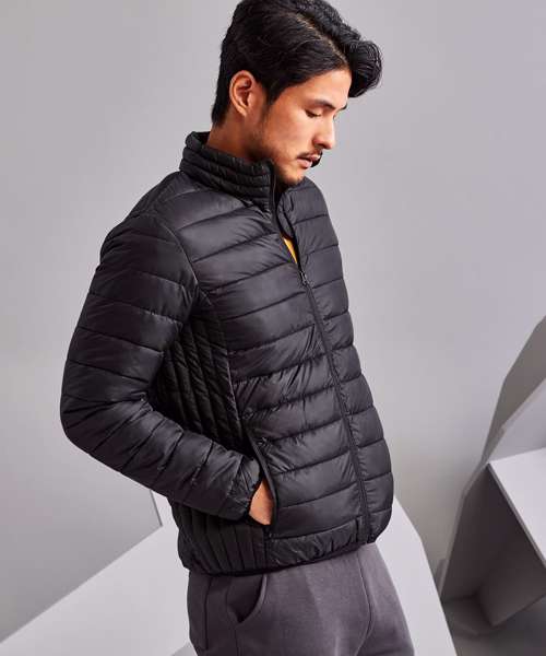 You’ll be in your element in this cool padded jacket with contrast zip and trim. Designed with horizontal quilting inside and out, the narrow vertical side stripes create a super slimline silhouette. With deep internal pockets and a clever zip guard, it’s the smart choice.