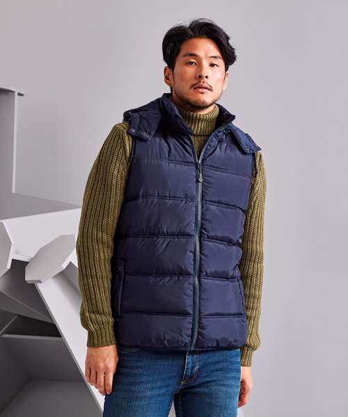 The Bryher recycled bodywarmer has a classic cut that can be worn over tops or light outerwear for extra warmth. Featuring an internal chest pocket for storing your mobile phone, plus a handy, removeable hood, this style also comes with two external pockets and chin guard for protecting yourself and your essentials when the weather takes a turn for the worse.
